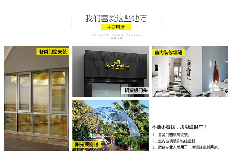 2、對石材、大理石、花崗巖、鋁塑板等,具有一般的密封效果。